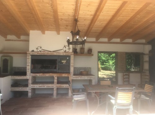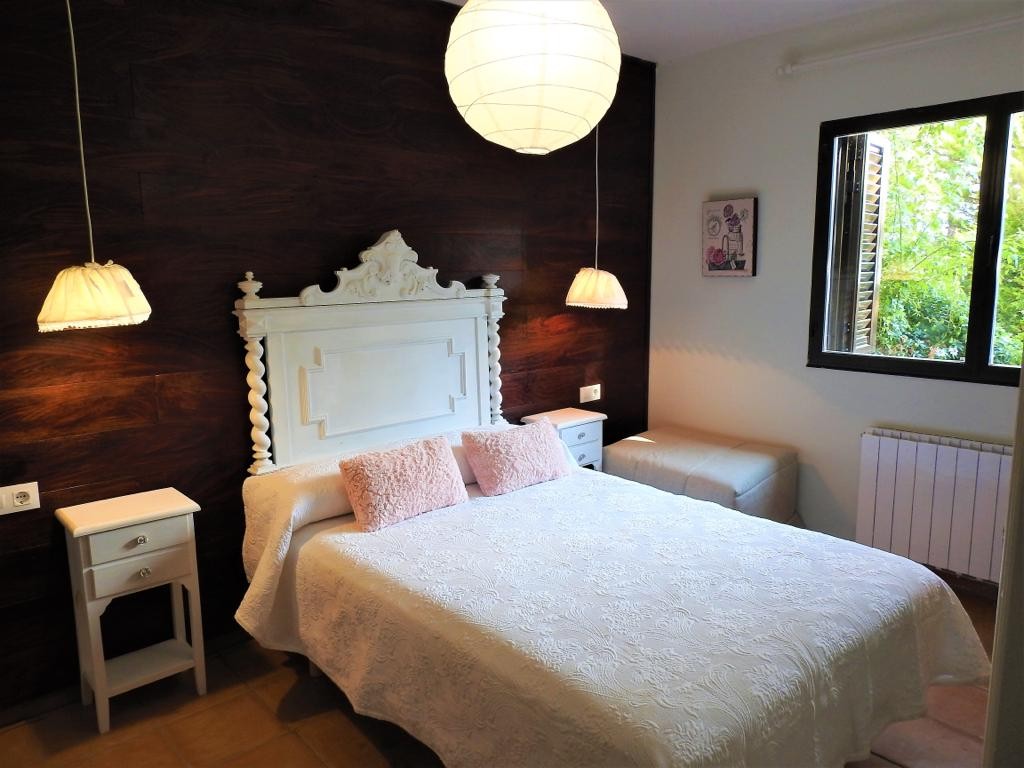 Consta de 7 habitaciones dobles con baño, se pueden poner supletorias en todas las habitaciones, hay salón con tres ventanales y chimenea, cocina comedor totalmente equipada, sala de juegos con futbolín, dos aseos, barbacoa cubierta, jardín y porche con zona de mesa y de sofás.